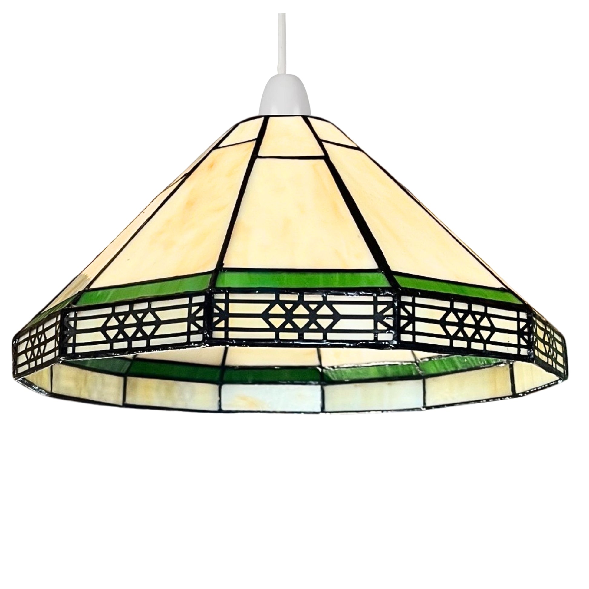 Mission Style Tiffany Shade, 30cm Diameter, Beige and Green Stained Glass, E27/B22 Compatible